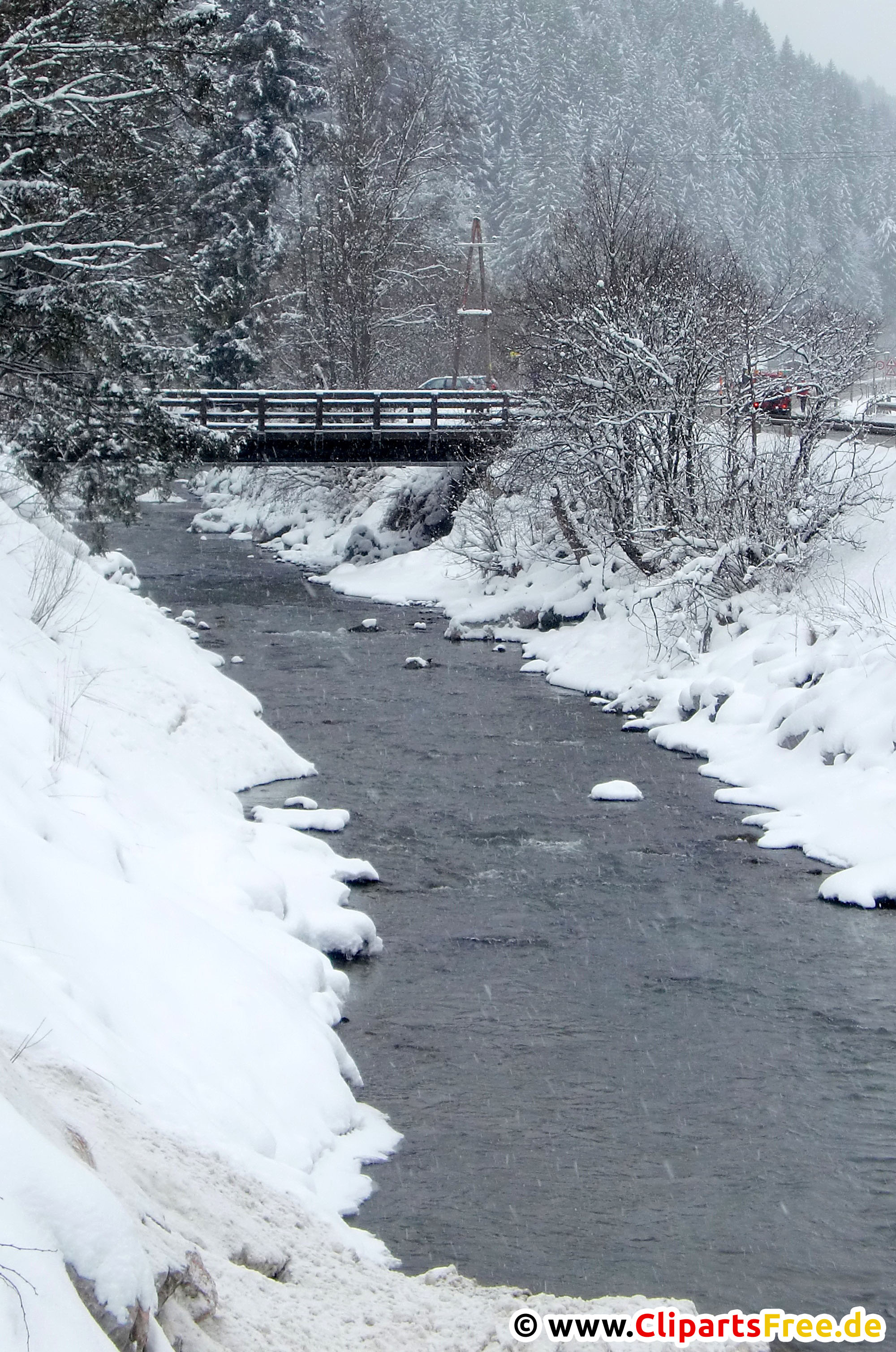 Fluß im Winterwald Foto kostenlos