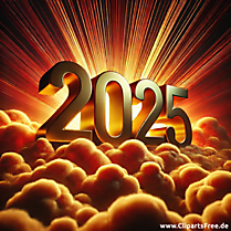 Lizenzfreie Clipart Bilder im Cartoonstil für Nutzung in nicht-kommerziellen Projekten. Jahr 2025 Zahlen in Gold - Clipart zum Silvester. Unsere Cliparts dürfen kostenlos herunterladen und in einem gängigen Office-Programm modifiziert werden.