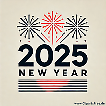 Lizenzfreie Clipart Bilder im Cartoonstil für Nutzung in nicht-kommerziellen Projekten. Neujahr 2025 Vintage Illustration. Unsere Cliparts dürfen kostenlos herunterladen und in einem gängigen Office-Programm modifiziert werden.