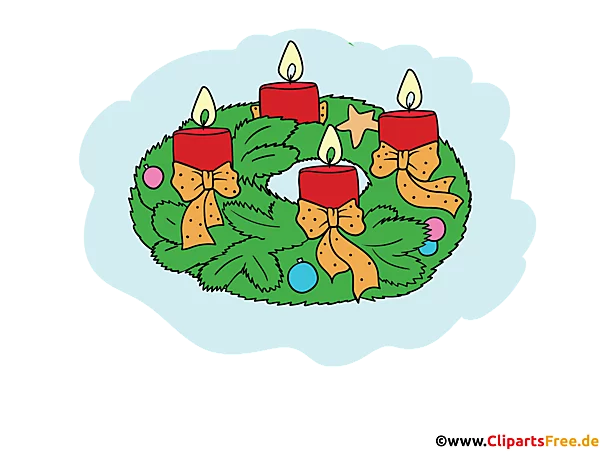 Lizenzfreie Clipart Bilder im Cartoonstil für Nutzung in nicht-kommerziellen Projekten. Adventskranz mit 4 Kerzen - Advent-Bilder kostenlos. Unsere Cliparts dürfen kostenlos herunterladen und in einem gängigen Office-Programm modifiziert werden.