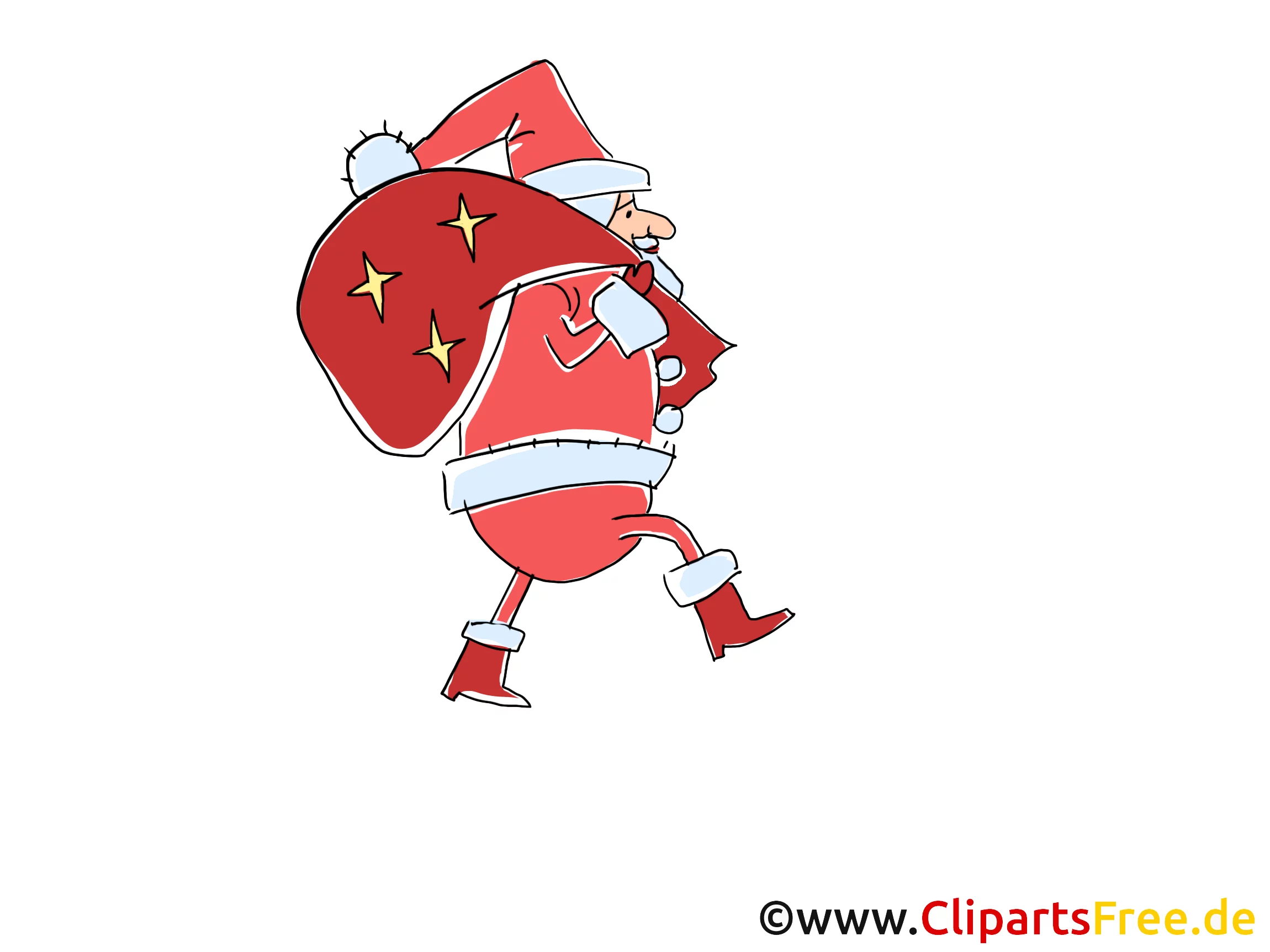 Lizenzfreie Clipart Bilder im Cartoonstil für Nutzung in nicht-kommerziellen Projekten. Santa Claus eine schoene Bescherung Cartoon, Bild. Unsere Cliparts dürfen kostenlos herunterladen und in einem gängigen Office-Programm modifiziert werden.