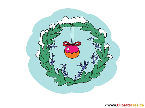 Lizenzfreie Clipart Bilder im Cartoonstil für Nutzung in nicht-kommerziellen Projekten. Weihnachtskranz mit Weihnachtskugel Illustration, Bild, PNG Clipart. Unsere Cliparts dürfen kostenlos herunterladen und in einem gängigen Office-Programm modifiziert werden.