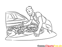 Lizenzfreie Clipart Bilder im Cartoonstil für Nutzung in nicht-kommerziellen Projekten. Kfz-Mechaniker Clipart, Grafik, Bild schwarz-weiß. Unsere Cliparts dürfen kostenlos herunterladen und in einem gängigen Office-Programm modifiziert werden.