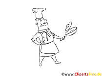 Lizenzfreie Clipart Bilder im Cartoonstil für Nutzung in nicht-kommerziellen Projekten. Koch im Restaurant Clipart, Grafik, Bild schwarz-weiß. Unsere Cliparts dürfen kostenlos herunterladen und in einem gängigen Office-Programm modifiziert werden.