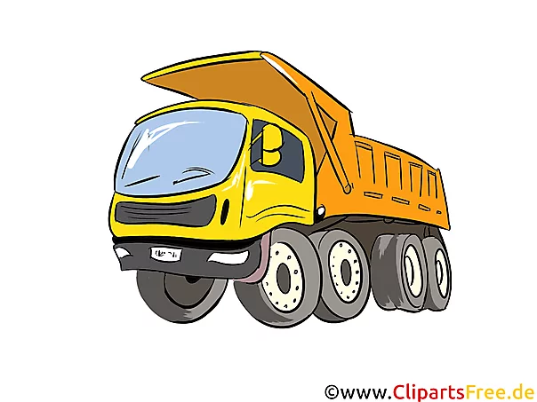Lizenzfreie Clipart Bilder im Cartoonstil für Nutzung in nicht-kommerziellen Projekten. LKW Kipper Illustration, Bild, Clipart Autos. Unsere Cliparts dürfen kostenlos herunterladen und in einem gängigen Office-Programm modifiziert werden.