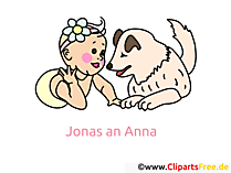Baby spielt mit Hund Clipart, Comic, Bild, Illustration