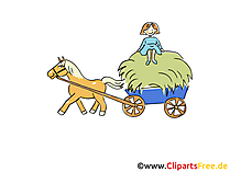Lizenzfreie Clipart Bilder im Cartoonstil für Nutzung in nicht-kommerziellen Projekten. Bauernhof Bilder - Heutransport auf dem Lande. Unsere Cliparts dürfen kostenlos herunterladen und in einem gängigen Office-Programm modifiziert werden.