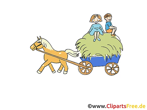 Lizenzfreie Clipart Bilder im Cartoonstil für Nutzung in nicht-kommerziellen Projekten. Bild Bauernhof Angespanntes Pferd mit Wagen. Unsere Cliparts dürfen kostenlos herunterladen und in einem gängigen Office-Programm modifiziert werden.