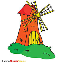 Lizenzfreie Clipart Bilder im Cartoonstil für Nutzung in nicht-kommerziellen Projekten. Windmühle Bild, Cartoon, Clipart, Grafik, Illustration. Unsere Cliparts dürfen kostenlos herunterladen und in einem gängigen Office-Programm modifiziert werden.
