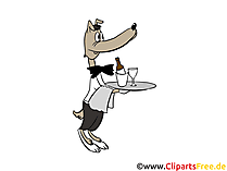 Lizenzfreie Clipart Bilder im Cartoonstil für Nutzung in nicht-kommerziellen Projekten. Hund als Ober im Restaurant Bild, Clipart, Illustration. Unsere Cliparts dürfen kostenlos herunterladen und in einem gängigen Office-Programm modifiziert werden.