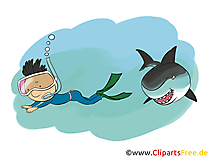 Taucher und Hai Clipart, Comic, Bild, Illustration. Gratis Clip Art Illustrationen zum Downloaden und Ausdrucken. Taucher und Hai Clipart, Comic, Bild, Illustration. Kostenlose Bilder für Gestaltung der Arbeitsblätter für Schule, Kindergarten, Studium oder Zuhause - Bastelstunden. Taucher und Hai Clipart, Comic, Bild, Illustration. Mit unseren gratis Bildern können Sie zum Beispiel Einladungen, Grusskarten oder Arbeitsblätter selbst gestalten.
