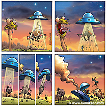Lizenzfreie Clipart Bilder im Cartoonstil für Nutzung in nicht-kommerziellen Projekten. Online Comics Strauss und UFO. Unsere Cliparts dürfen kostenlos herunterladen und in einem gängigen Office-Programm modifiziert werden.