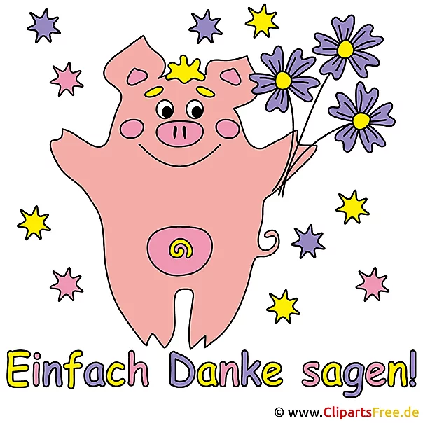 Danksagungskarte Schweinchen mit Blumen. Dieses Clipart-Bild ist standardmäßig als PNG- oder JPG-Datei zu downloaden. Sukzessive bereiten wir vor und publizieren alle unsere Cliparts in freiskalierbaren Vektorformaten für eine noch bessere Druckqualität zur Verfügung. Ob eine Grafik als Vektor verfügbar ist, erkennen Sie an dem Icon "Download als Vektor" unter jedem Bild.