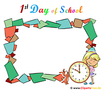 Lizenzfreie Clipart Bilder im Cartoonstil für Nutzung in nicht-kommerziellen Projekten. 1th Day of School Rahmen Clipart transparent zur Einschulung. Unsere Cliparts dürfen kostenlos herunterladen und in einem gängigen Office-Programm modifiziert werden.