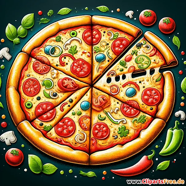 Lizenzfreie Clipart Bilder im Cartoonstil für Nutzung in nicht-kommerziellen Projekten. Clip Art Pizza mit Käse, Tomaten, Oliven. Unsere Cliparts dürfen kostenlos herunterladen und in einem gängigen Office-Programm modifiziert werden.