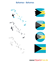 Lizenzfreie Clipart Bilder im Cartoonstil für Nutzung in nicht-kommerziellen Projekten. Bahamas-Karte mit Flagge, Kontur mit Fahne, Icon, Button. Unsere Cliparts dürfen kostenlos herunterladen und in einem gängigen Office-Programm modifiziert werden.