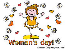 Lizenzfreie Clipart Bilder im Cartoonstil für Nutzung in nicht-kommerziellen Projekten. Frauentag Karte. Unsere Cliparts dürfen kostenlos herunterladen und in einem gängigen Office-Programm modifiziert werden.