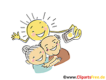 Lizenzfreie Clipart Bilder im Cartoonstil für Nutzung in nicht-kommerziellen Projekten. Selfie mit Sonne Cartoon, Clipart, Bild, Illustration. Unsere Cliparts dürfen kostenlos herunterladen und in einem gängigen Office-Programm modifiziert werden.