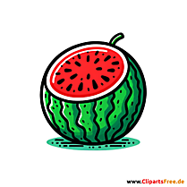 Lizenzfreie Clipart Bilder im Cartoonstil für Nutzung in nicht-kommerziellen Projekten. Wassermelone geschnitten Clipart, Bild, Illustration. Unsere Cliparts dürfen kostenlos herunterladen und in einem gängigen Office-Programm modifiziert werden.