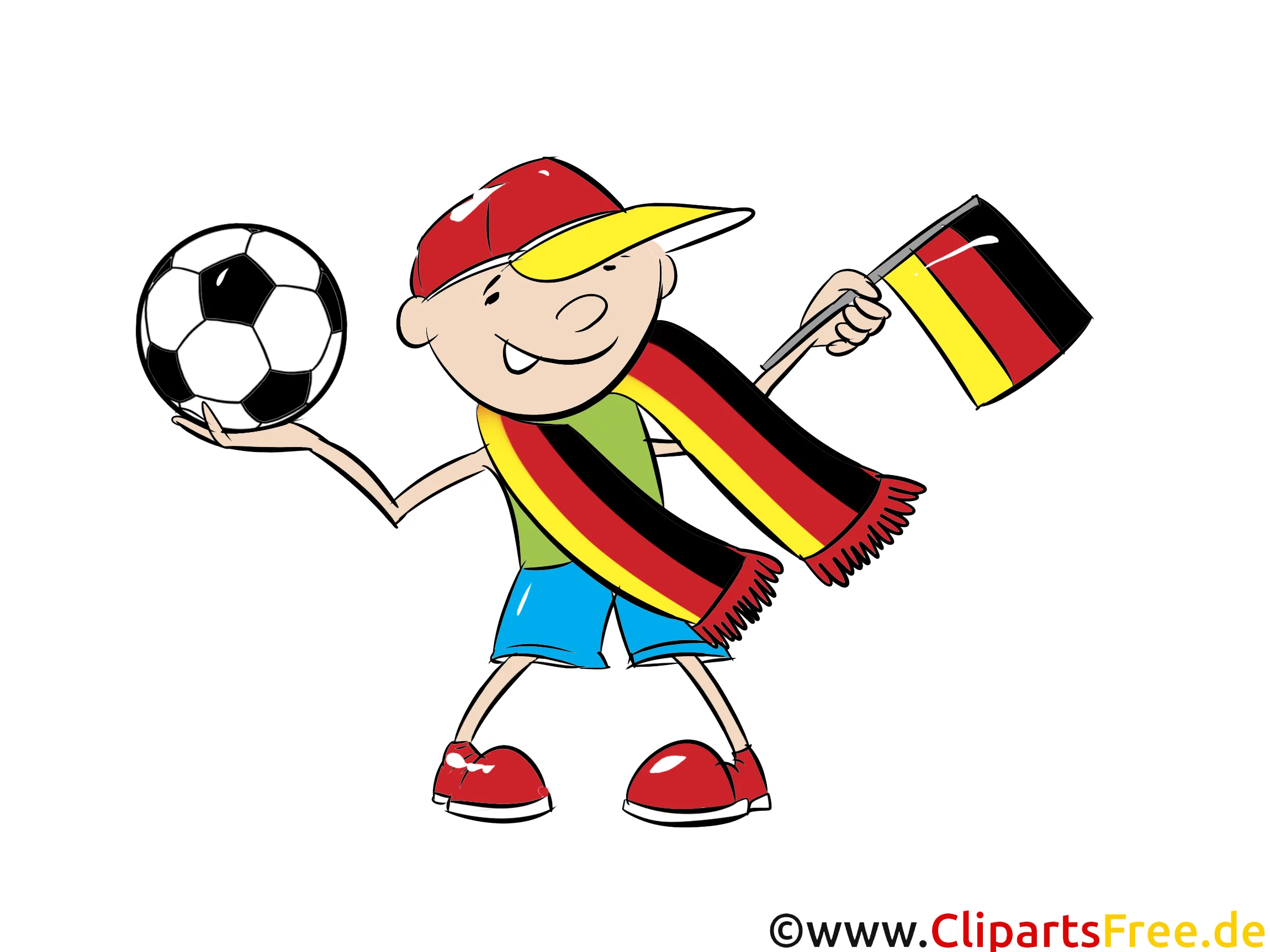 Lizenzfreie Clipart Bilder im Cartoonstil für Nutzung in nicht-kommerziellen Projekten. Fußball-Europameisterschaft Clipart-Bild Deutschland-Fan. Unsere Cliparts dürfen kostenlos herunterladen und in einem gängigen Office-Programm modifiziert werden.