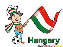 Lizenzfreie Clipart Bilder im Cartoonstil für Nutzung in nicht-kommerziellen Projekten. Cartoon-Bild Fussball ungarischer Sportfan. Unsere Cliparts dürfen kostenlos herunterladen und in einem gängigen Office-Programm modifiziert werden.