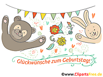 Lizenzfreie Clipart Bilder im Cartoonstil für Nutzung in nicht-kommerziellen Projekten. Glueckwuensche fuer Geburtstagskind zum Geburtstag. Unsere Cliparts dürfen kostenlos herunterladen und in einem gängigen Office-Programm modifiziert werden.