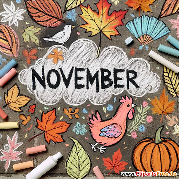 Clipart November. Dieses Clipart-Bild ist standardmäßig als PNG- oder JPG-Datei zu downloaden. Sukzessive bereiten wir vor und publizieren alle unsere Cliparts in freiskalierbaren Vektorformaten für eine noch bessere Druckqualität zur Verfügung. Ob eine Grafik als Vektor verfügbar ist, erkennen Sie an dem Icon "Download als Vektor" unter jedem Bild.