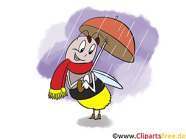Lizenzfreie Clipart Bilder im Cartoonstil für Nutzung in nicht-kommerziellen Projekten. Lustige Bilder Herbst - Biene mit Regenschirm. Unsere Cliparts dürfen kostenlos herunterladen und in einem gängigen Office-Programm modifiziert werden.