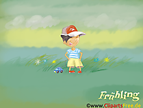 Hintergrundbild Frühling - Kleiner Junge auf der grünen Wiese. Gratis Clip Art Illustrationen zum Downloaden und Ausdrucken. Hintergrundbild Frühling - Kleiner Junge auf der grünen Wiese. Kostenlose Bilder für Gestaltung der Arbeitsblätter für Schule, Kindergarten, Studium oder Zuhause - Bastelstunden. Hintergrundbild Frühling - Kleiner Junge auf der grünen Wiese. Mit unseren gratis Bildern können Sie zum Beispiel Einladungen, Grusskarten oder Arbeitsblätter selbst gestalten.