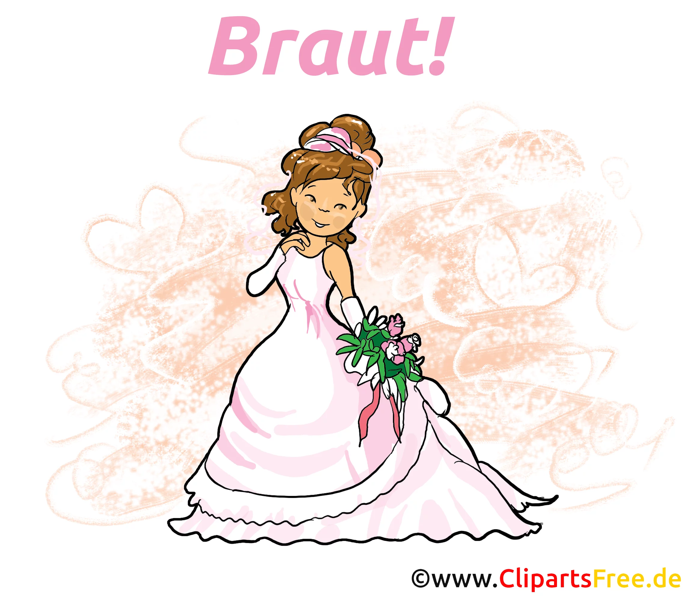 Lizenzfreie Clipart Bilder im Cartoonstil für Nutzung in nicht-kommerziellen Projekten. Braut Clipart, Hochzeit Bild, Illustration. Unsere Cliparts dürfen kostenlos herunterladen und in einem gängigen Office-Programm modifiziert werden.