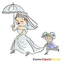 Lizenzfreie Clipart Bilder im Cartoonstil für Nutzung in nicht-kommerziellen Projekten. Mädchen trägt Kleid der Braut Illustration, Clipart, Grafik. Unsere Cliparts dürfen kostenlos herunterladen und in einem gängigen Office-Programm modifiziert werden.