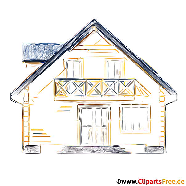 Lizenzfreie Clipart Bilder im Cartoonstil für Nutzung in nicht-kommerziellen Projekten. Landhaus Skizze, Zeichnung, Bild. Unsere Cliparts dürfen kostenlos herunterladen und in einem gängigen Office-Programm modifiziert werden.