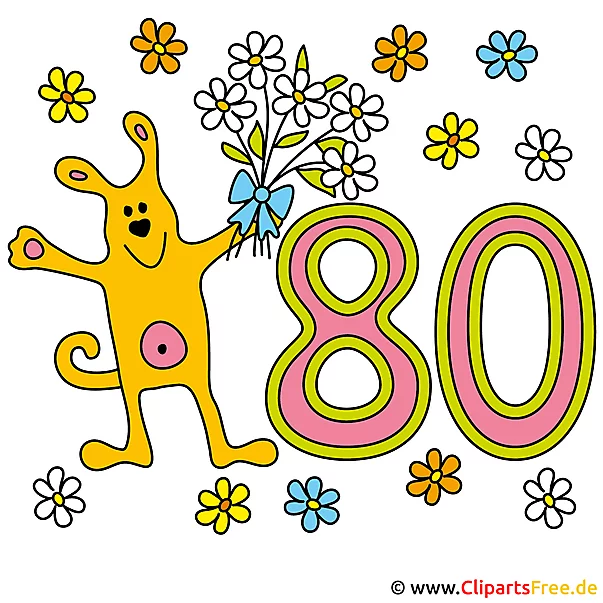 Lizenzfreie Clipart Bilder im Cartoonstil für Nutzung in nicht-kommerziellen Projekten. 80 Jubiläum Bild, Karte, Clipart. Unsere Cliparts dürfen kostenlos herunterladen und in einem gängigen Office-Programm modifiziert werden.