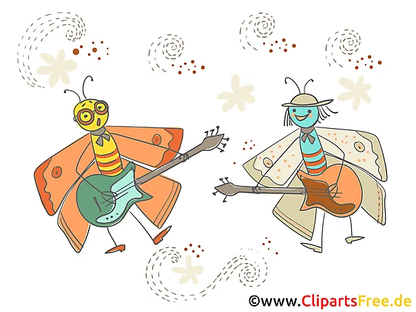 Lizenzfreie Clipart Bilder im Cartoonstil für Nutzung in nicht-kommerziellen Projekten. Karneval Bild lustige Motten mit Gitarren. Unsere Cliparts dürfen kostenlos herunterladen und in einem gängigen Office-Programm modifiziert werden.