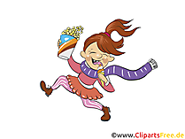 Lizenzfreie Clipart Bilder im Cartoonstil für Nutzung in nicht-kommerziellen Projekten. Mädchen mit Blumen Cartoon, Clipart, Bild, Illustration. Unsere Cliparts dürfen kostenlos herunterladen und in einem gängigen Office-Programm modifiziert werden.