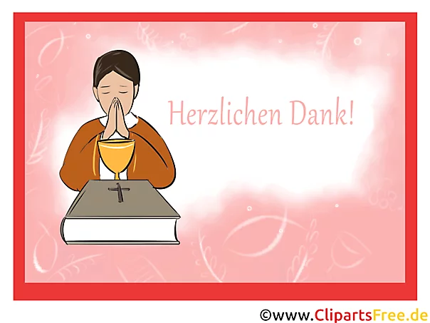 Lizenzfreie Clipart Bilder im Cartoonstil für Nutzung in nicht-kommerziellen Projekten. Herzlichen Dank Karte zur Kommunion. Unsere Cliparts dürfen kostenlos herunterladen und in einem gängigen Office-Programm modifiziert werden.