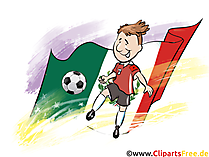Lizenzfreie Clipart Bilder im Cartoonstil für Nutzung in nicht-kommerziellen Projekten. Mexikanischer Fussballspieler Bild, Illustration. Unsere Cliparts dürfen kostenlos herunterladen und in einem gängigen Office-Programm modifiziert werden.