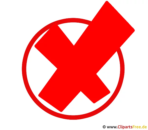 Lizenzfreie Clipart Bilder im Cartoonstil für Nutzung in nicht-kommerziellen Projekten. Rotes X. Unsere Cliparts dürfen kostenlos herunterladen und in einem gängigen Office-Programm modifiziert werden.