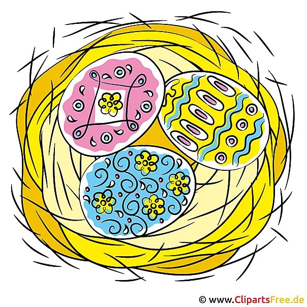 Lizenzfreie Clipart Bilder im Cartoonstil für Nutzung in nicht-kommerziellen Projekten. Ostereier Illustration. Unsere Cliparts dürfen kostenlos herunterladen und in einem gängigen Office-Programm modifiziert werden.
