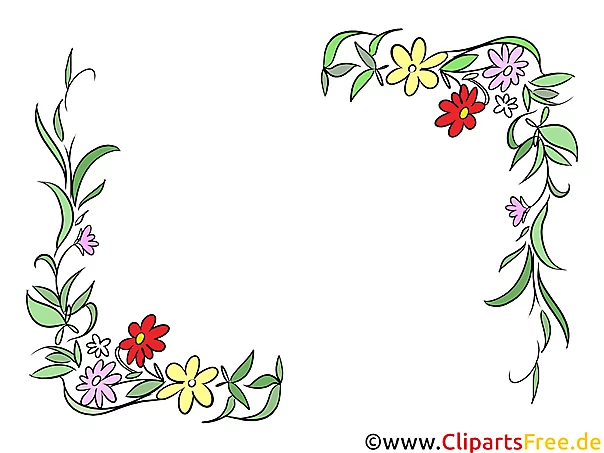 Lizenzfreie Clipart Bilder im Cartoonstil für Nutzung in nicht-kommerziellen Projekten. Blumenranken Sommer, Frühling Clipart. Unsere Cliparts dürfen kostenlos herunterladen und in einem gängigen Office-Programm modifiziert werden.