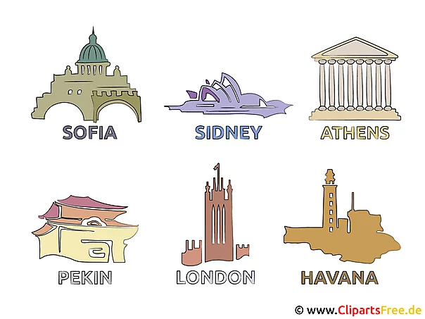 Lizenzfreie Clipart Bilder im Cartoonstil für Nutzung in nicht-kommerziellen Projekten. Bilder Hauptstaedte. Unsere Cliparts dürfen kostenlos herunterladen und in einem gängigen Office-Programm modifiziert werden.