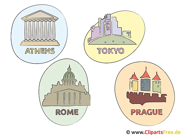 Prag, Athen, Tokyo, Rom Cliparts. Gratis Clip Art Illustrationen zum Downloaden und Ausdrucken. Prag, Athen, Tokyo, Rom Cliparts. Kostenlose Bilder für Gestaltung der Arbeitsblätter für Schule, Kindergarten, Studium oder Zuhause - Bastelstunden. Prag, Athen, Tokyo, Rom Cliparts. Mit unseren gratis Bildern können Sie zum Beispiel Einladungen, Grusskarten oder Arbeitsblätter selbst gestalten.