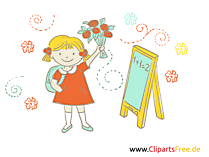 Bilder Schule Clipart - Mädchen mit Blumenstrauss