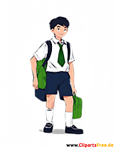 Lizenzfreie Clipart Bilder im Cartoonstil für Nutzung in nicht-kommerziellen Projekten. Manga Junge auf dem Weg zur Schule Clip Art kostenlos. Unsere Cliparts dürfen kostenlos herunterladen und in einem gängigen Office-Programm modifiziert werden.
