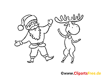 Lizenzfreie Clipart Bilder im Cartoonstil für Nutzung in nicht-kommerziellen Projekten. Santa und Elch Ausmalbild zum Ausmalen. Unsere Cliparts dürfen kostenlos herunterladen und in einem gängigen Office-Programm modifiziert werden.