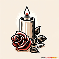 Lizenzfreie Clipart Bilder im Cartoonstil für Nutzung in nicht-kommerziellen Projekten. Rose und Kerze Illustration zum Totensonntag. Unsere Cliparts dürfen kostenlos herunterladen und in einem gängigen Office-Programm modifiziert werden.