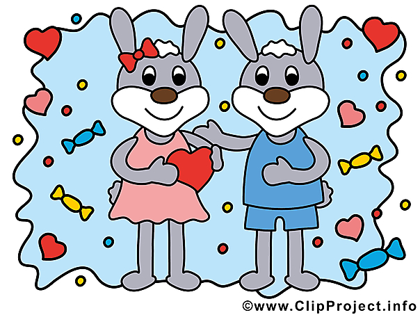 Lizenzfreie Clipart Bilder im Cartoonstil für Nutzung in nicht-kommerziellen Projekten. Bilder für Verliebte - Zwei niedliche Hasen. Unsere Cliparts dürfen kostenlos herunterladen und in einem gängigen Office-Programm modifiziert werden.