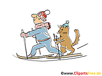 Mann und Kater fahren Ski im Winter Cartoon, Clipart, Bild, Illustration. Gratis Clip Art Illustrationen zum Downloaden und Ausdrucken. Mann und Kater fahren Ski im Winter Cartoon, Clipart, Bild, Illustration. Kostenlose Bilder für Gestaltung der Arbeitsblätter für Schule, Kindergarten, Studium oder Zuhause - Bastelstunden. Mann und Kater fahren Ski im Winter Cartoon, Clipart, Bild, Illustration. Mit unseren gratis Bildern können Sie zum Beispiel Einladungen, Grusskarten oder Arbeitsblätter selbst gestalten.