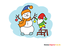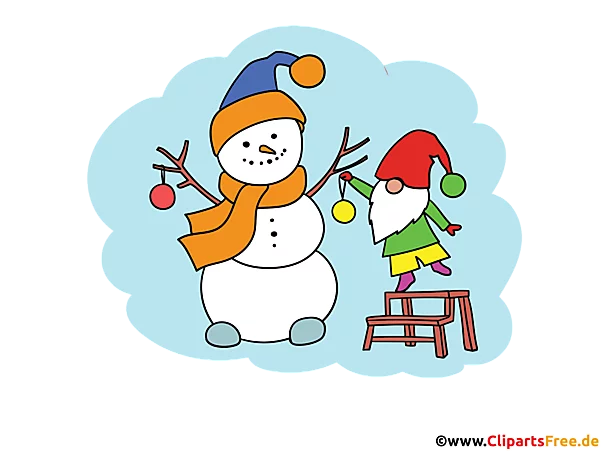 Lizenzfreie Clipart Bilder im Cartoonstil für Nutzung in nicht-kommerziellen Projekten. Schneemann und Gnom Illustration, Bild, PNG Clipart. Unsere Cliparts dürfen kostenlos herunterladen und in einem gängigen Office-Programm modifiziert werden.
